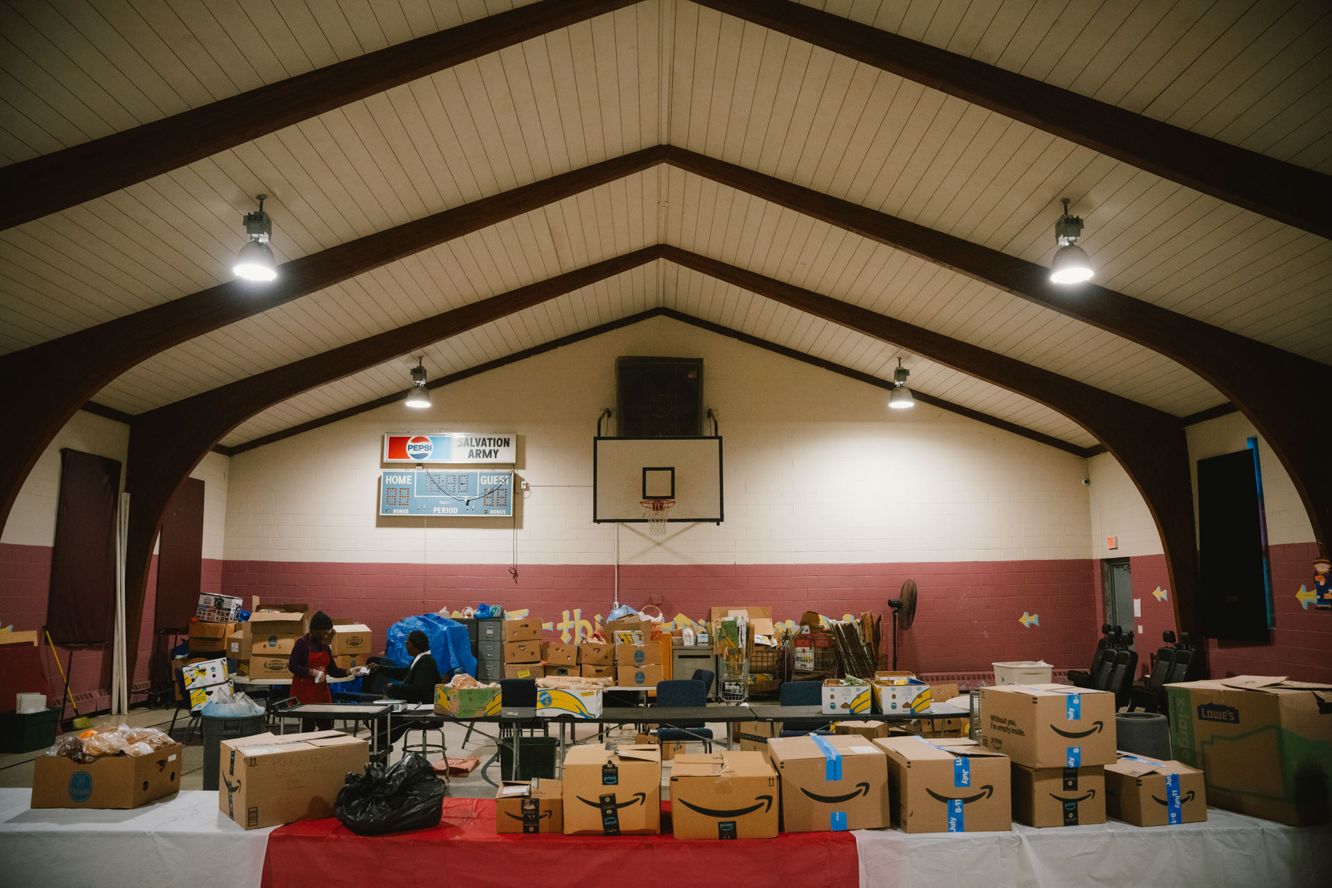 The Salvation Army gym in Poughkeepsie, New York, is ready for the annual Christmas distribution. If it’s happening at her corps, Jewel Caquias is involved. (Photo/Kevin Diaz)
