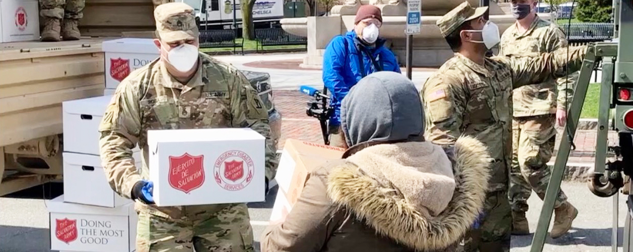 The COVID–19 “hotspot” known as Chelsea, Mass., continues to attract national attention as hungry people line up each day for food at the Chelsea/East Boston Salvation Army. However, this tells only part of the story. Separately from the corps, the Massachusetts Division’s Emergency Disaster Services (EDS) team has partnered with the Massachusetts Emergency Management Agency (MEMA), the city of Chelsea, and the National Guard to provide almost 5,000 emergency food boxes to the troubled city.