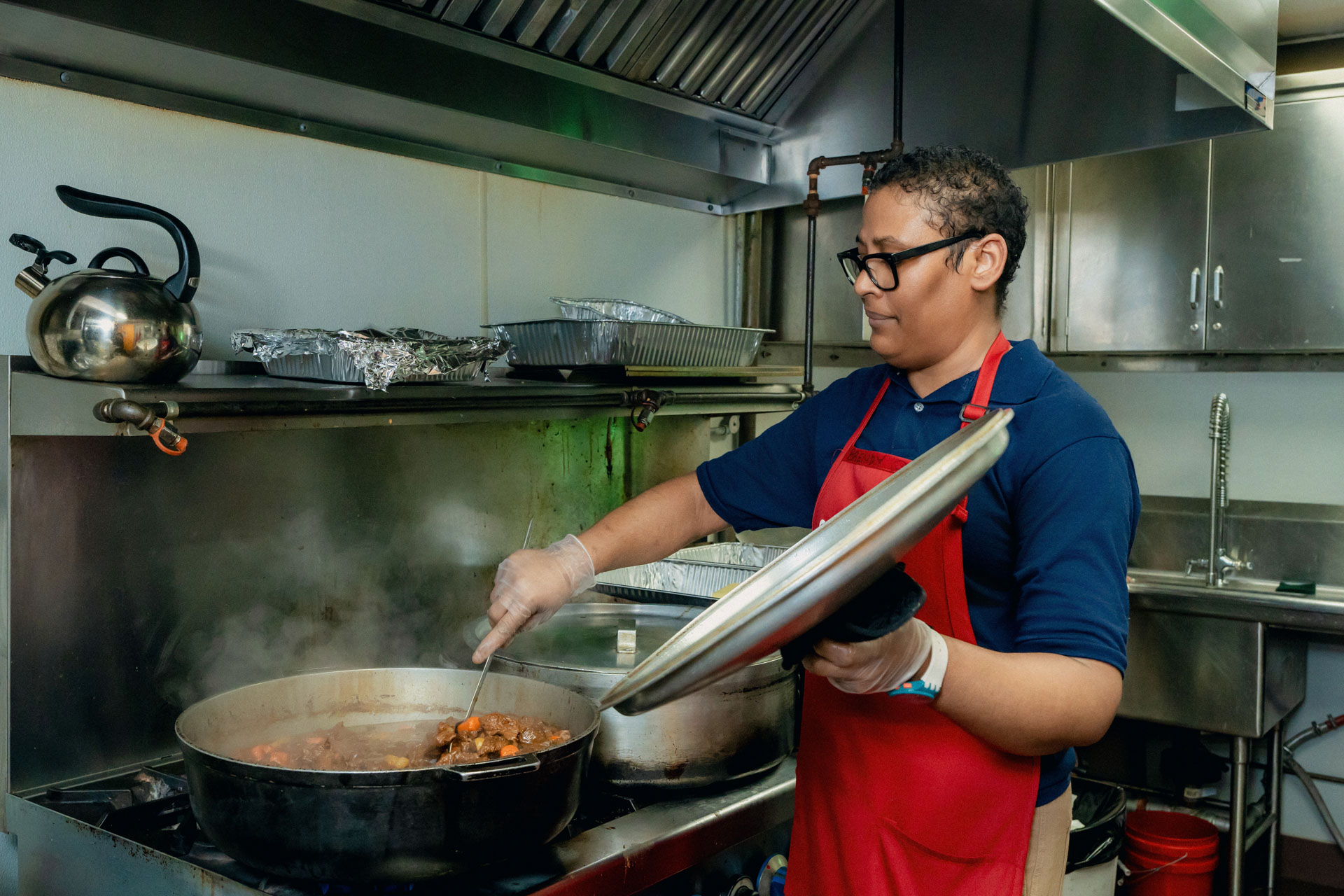 Brendy Best cooks beef stew at The Salvation Army’s Bushwick Corps in Brooklyn, N.Y., where she loves to serve those in need.
