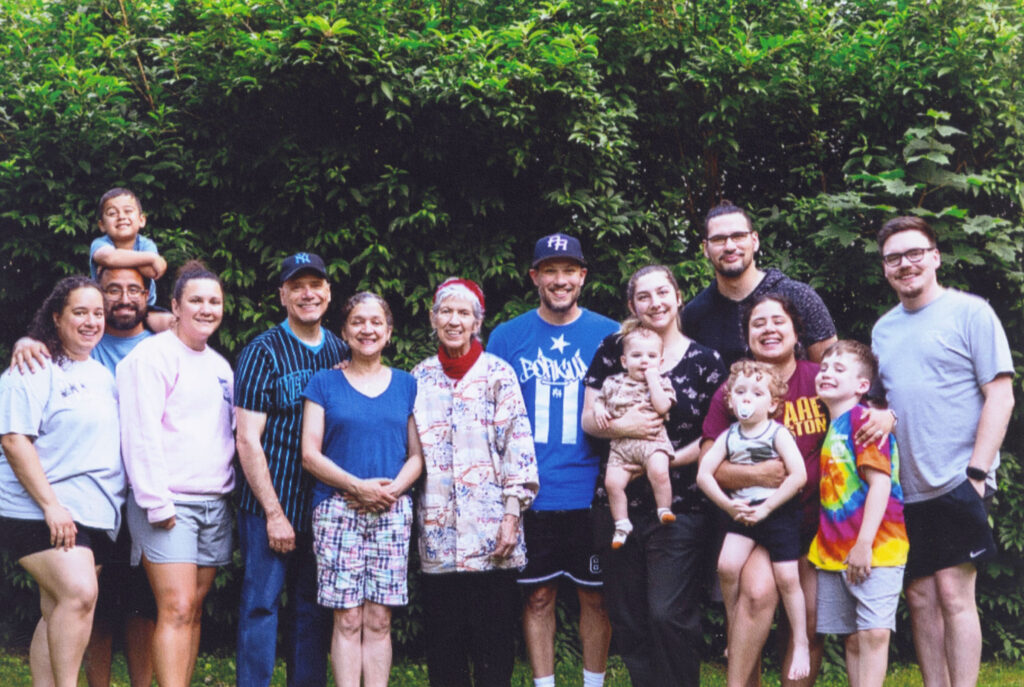 Alba Talavera, center, with her arm around daughter Bernadette Cruz, gets together with loved ones in June 2025. Alba taught them that Jesus is the way.