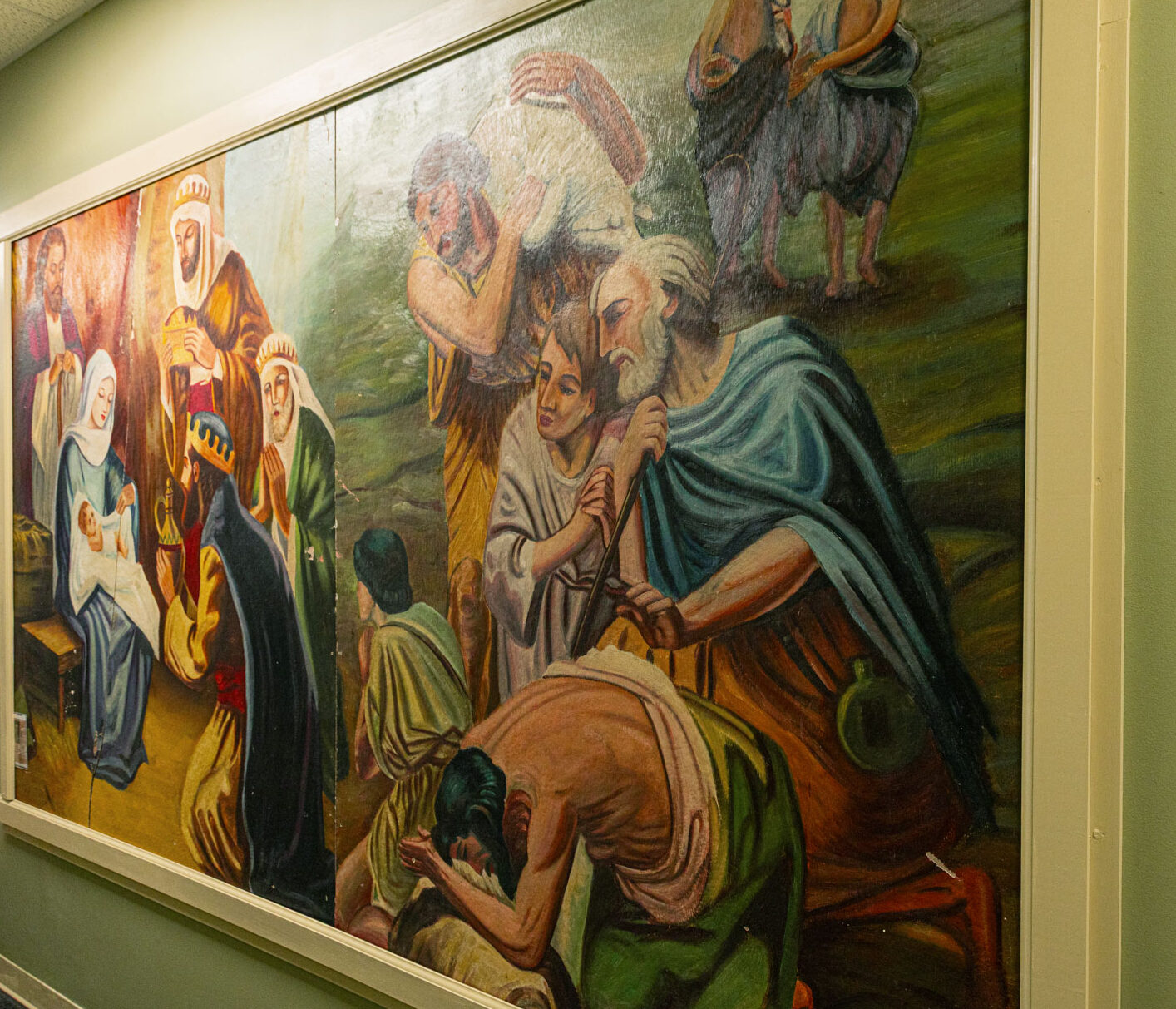 Hanging the Nativity painting in the main hallway near the church office and in view of those coming to the soup kitchen was intentional, even though the piece has cracks and damage. Captain BettyEllen said, “It’s just a way to let the community know we’re a church and we love Jesus.”