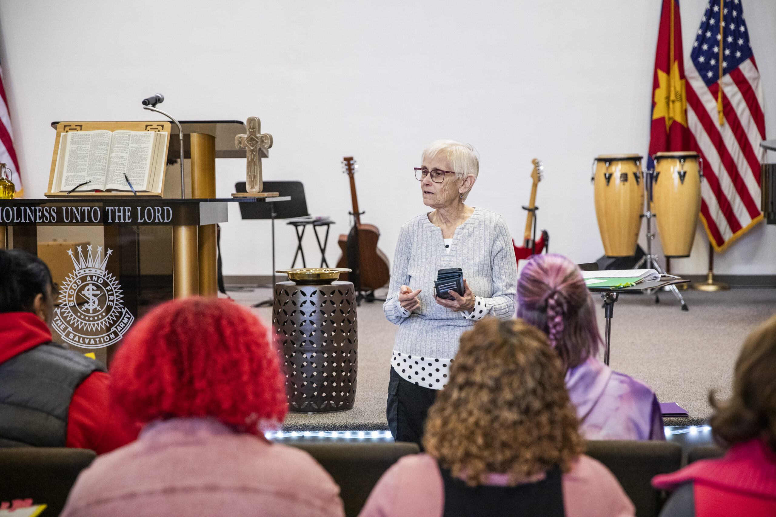 Major Sharon Cupp, the retired Salvation Army officer who was leading the choir, at one point abruptly paused rehearsal of a Palm Sunday song to share an emotional message.