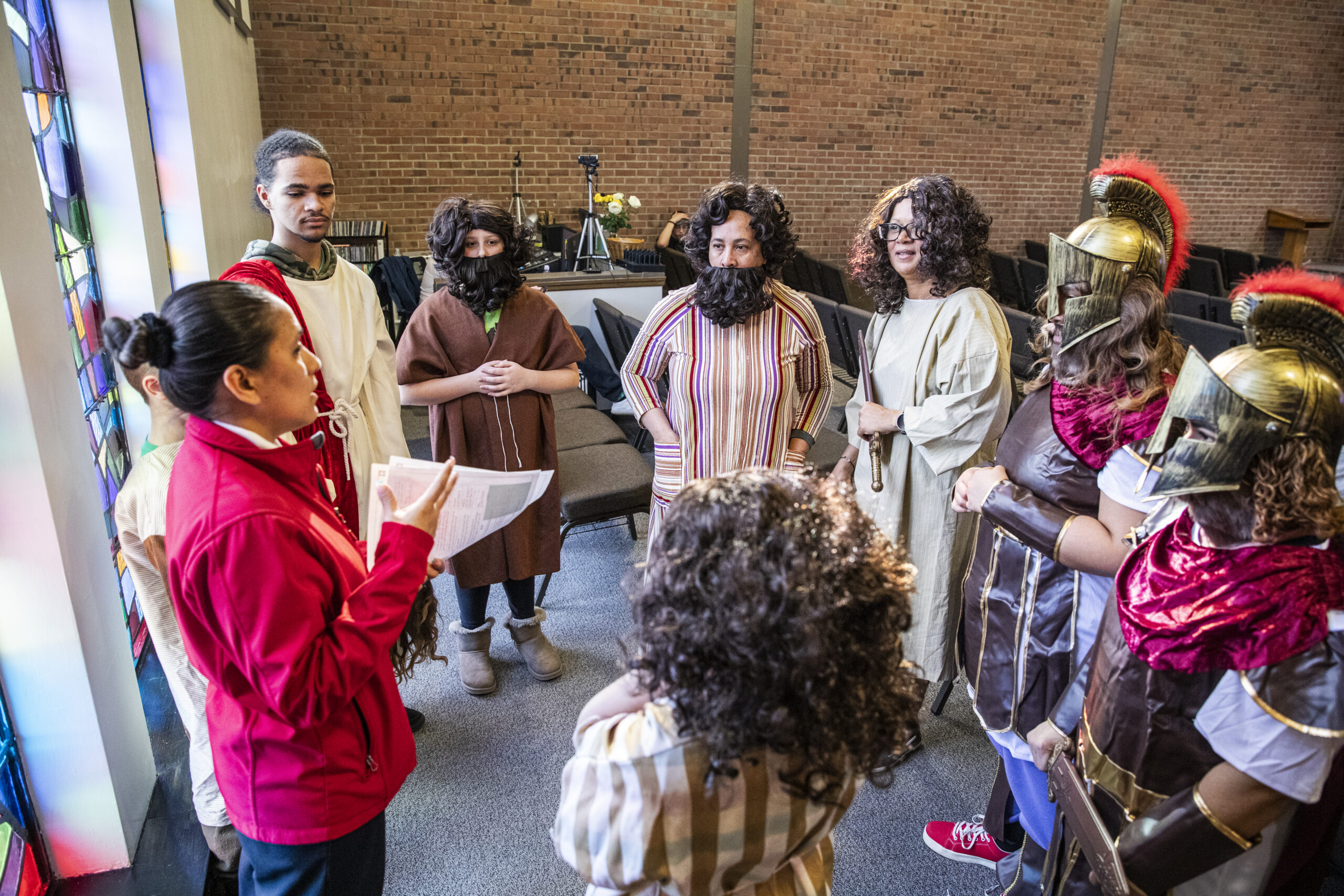 Captain Irseris Ortiz goes over details with the cast of a reenactment of Jesus in the Garden of Gethsemane. The Salvation Army in Wilkes-Barre, Pennsylvania, takes Holy Week seriously.