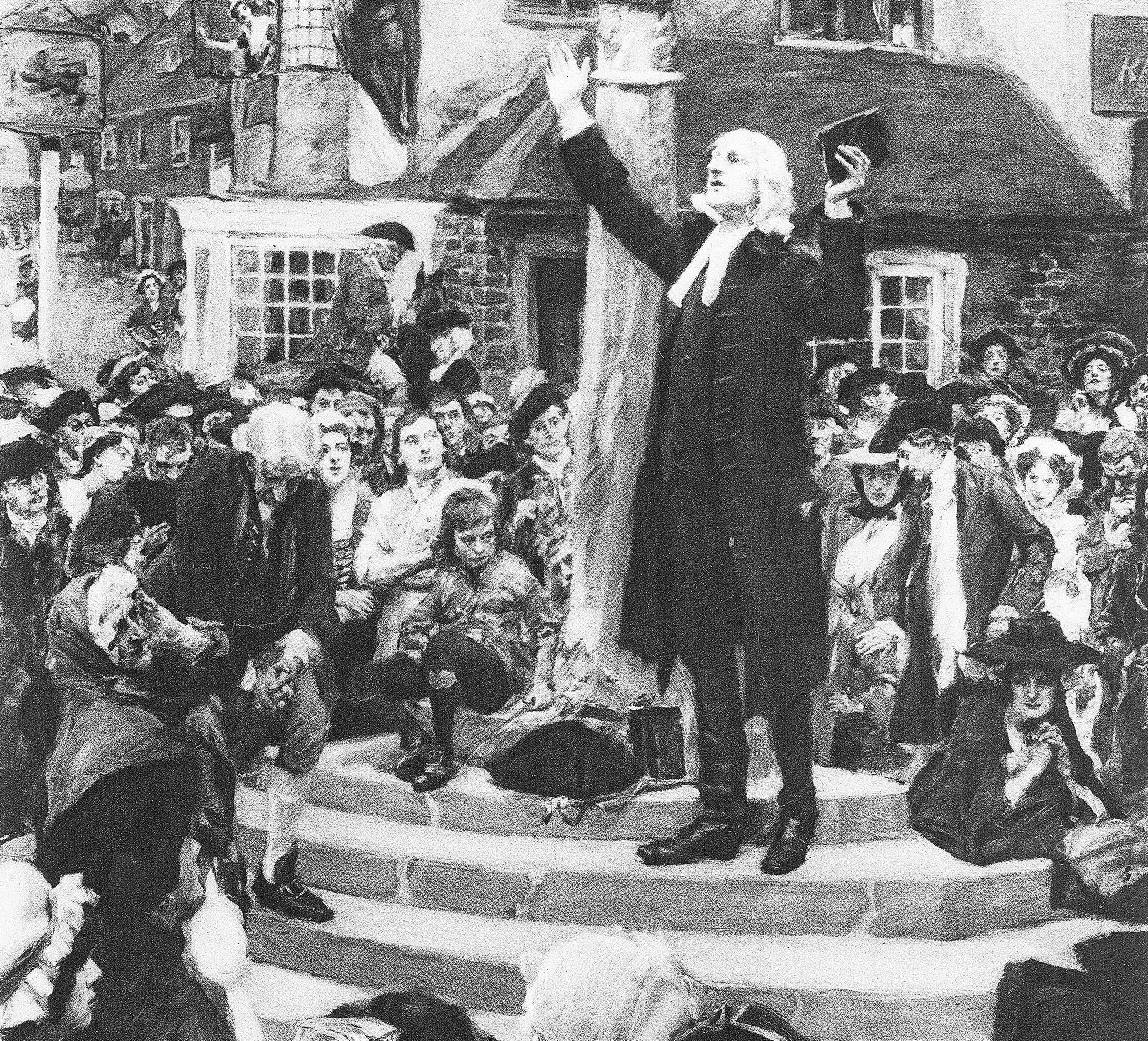 John Wesley preaches in the open air. The founder of Methodism held the first Covenant Renewal Service, to help Christian believers renew their covenant with God, in London in 1755. (Illustration/Alamy)